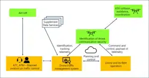 إن بنية إدارة حركة الطائرات بدون طيار هي شيء يتم تخيله كما هو موضح في الصورة أعلاه.